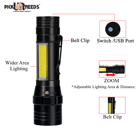 Pick Ur Needs Dual Mode 3 In 1 Mini Metal Long Range Rechargeable Torch Light (Pack of 2)