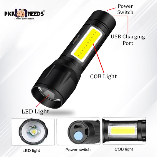 5.0 (205)Pick Ur Needs 3 Mode Rechargeable Mini Emergency Flashlight With LED+COB Zoomable Torch Light