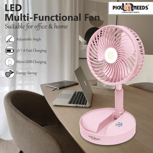Pick Ur Needs Rechargeable Portable Mini Table Fan 2 Mode LED Light Foldable Design 3 mm...