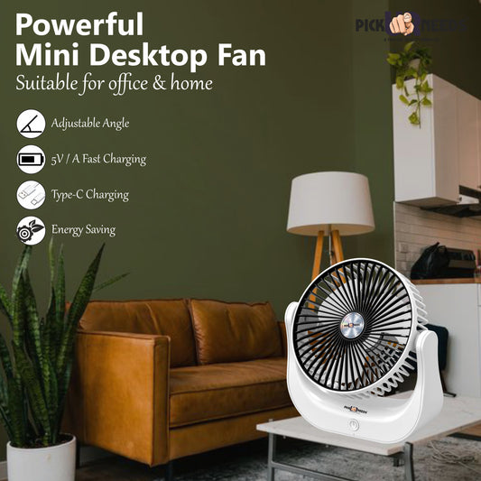 Pick Ur Needs Rechargeable Mini Table Fan 2000mAh Battery Type C Charging 180 Degree Mov...