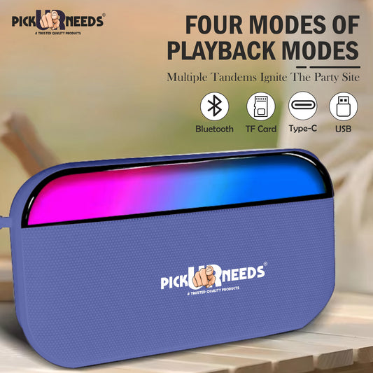Pick Ur Needs Portable Wireless Speaker With RGB Light TF Card/USB Device Hands Free Calling 5 W Bluetooth Speaker (Blue, 5.0 Channel)