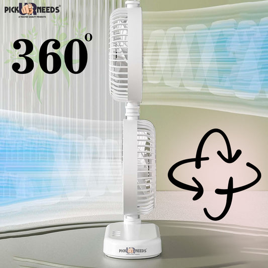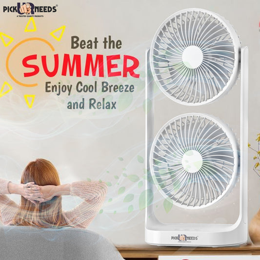 Pick Ur Needs Rechargeable Desk Table Fan Electric Dual Head with Powerful Airflow for O...