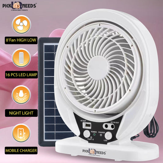 Pick Ur Needs Portable Solar Rechargeble Mini Desk Fan with 2 LED Light Bulb & Solar Pan...