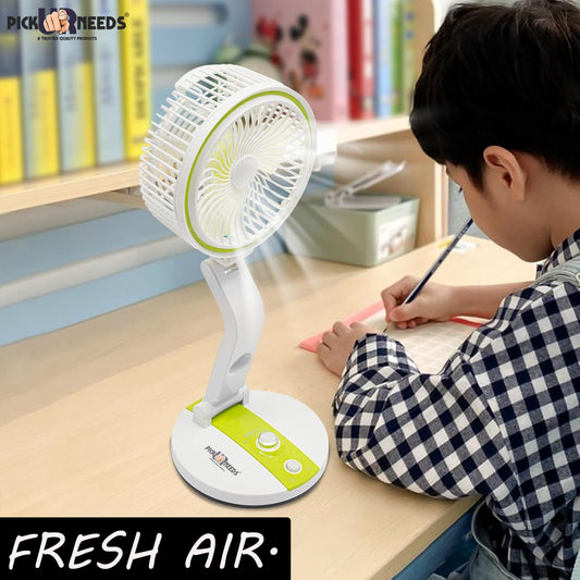 Pick Ur Needs Rechargeable Table Fan With 1 LED Flashlight and 4 Speed Mode 3000mAh Batt...
