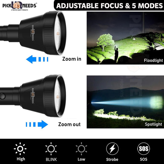 Pick Ur Needs 150W Rechargeable LED Torch offers powerful brightness, zoomable focus, 6 ...