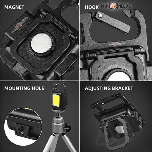 Pick Ur Needs Rechargeable Mini Pocket Keychain LED Torch Lantern Magnet with Folding Br...