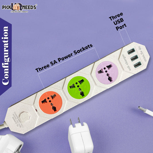 Pick Ur Needs Extension Cord Board with 3 USB Charging Ports and 3 Socket -10 Amp Heavy ...