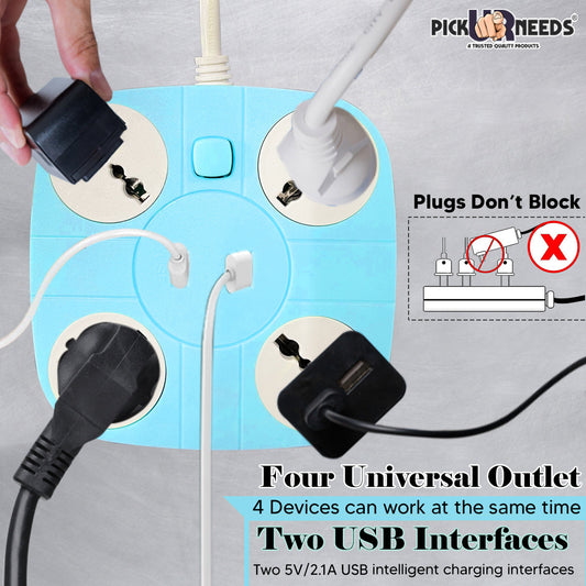Pick Ur Needs Portable 2 USB Port & 2 USB Universal Socket Extension Boards for Multipur...