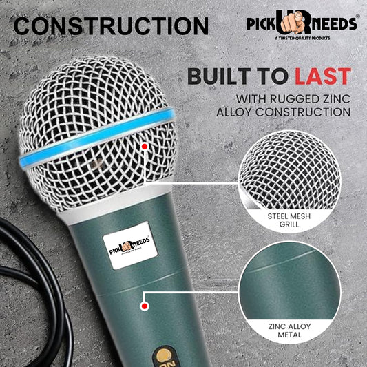 Pick Ur Needs Professional Dynamic Microphone โ Wired Cardioid Mic, All-Metal Body- Cord...