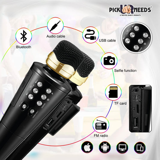 Pick Ur Needs 2 in1 Karaoke Microphone & Bluetooth Speaker with LED Light Wireless Conne...