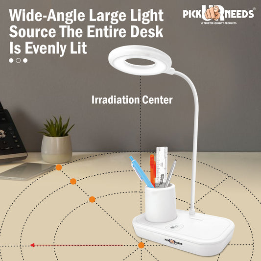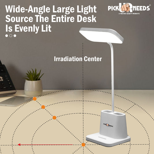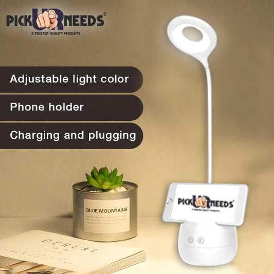 Pick Ur Needs LED Rechargeable Table Study Desk Lamp Reading Light with 3 Mode Dimming with Pen Holder, Phone Stand & USB Power