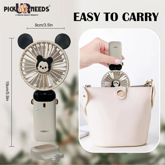 Pick Ur Needs Rechargeable Foldable Mini Handheld Fan Micky Mouse Design 5 Mode Speed LE...
