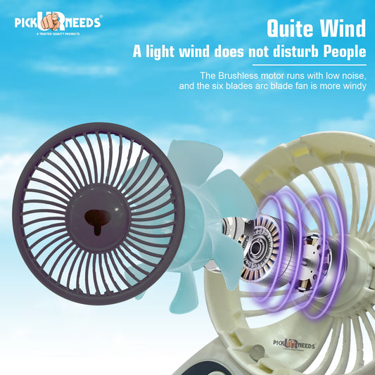Pick Ur Needs Rechargeable Table Fan 2 Mode LED 3 Type Speed Foldable Design 3 mm Energy...