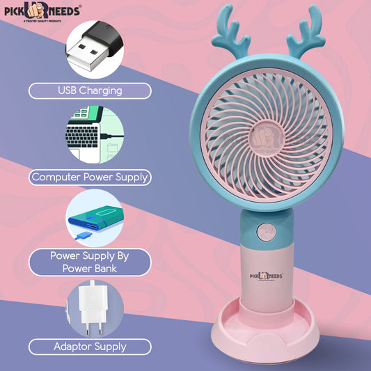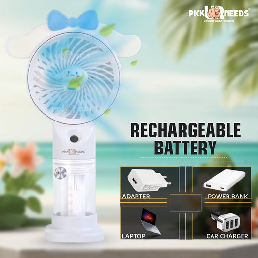 Pick Ur Needs Mini Fan For Home/Travel/Office/Hand Fan Rechargeable Battery Teddy Design...