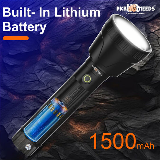 Pick Ur Needs 100W+100W LED Rechargeable Long Range Torch Light with 5 Lighting Modes Flashlight 1500mAh Battery Searchlight for Camping, Outdoor, Hiking, Emergency Use