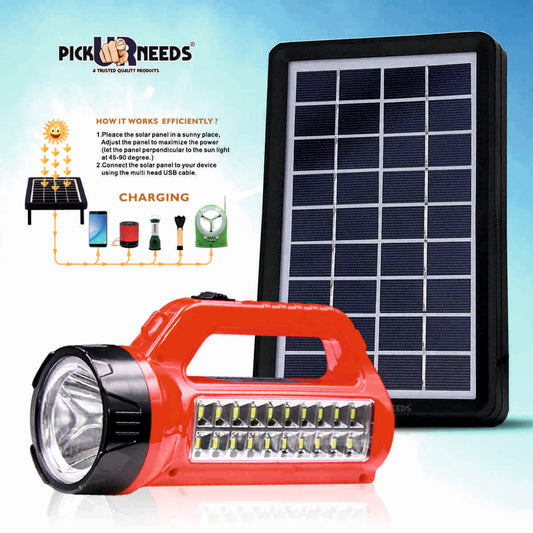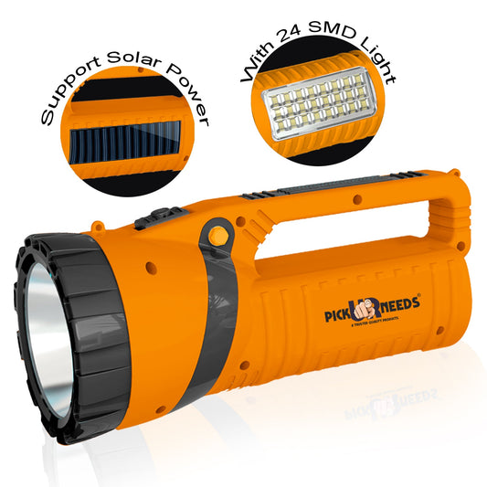 Pick Ur Needs Solar Rechargeable Emergency Long Range Search Torch Light 75 Watts + 24 SMD