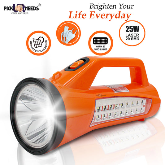 Pick Ur Needs Dual Power 2 in 1 Led 20 Watt Rechargeable Torch Light Long Range with Dua...