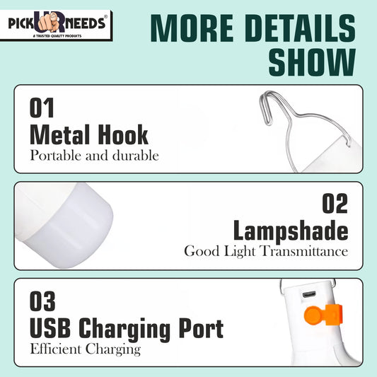 Pick Ur Needs 100W LED Rechargeable Light Bulb with 3 Modes, Ideal for Home, Outdoor,Pow...
